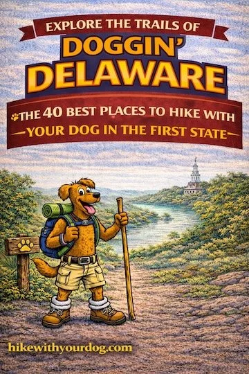 Delaware can be a great place to hike with your dog. Inside the First State you can hike with your dog on sand trails, climb hills that leave you and your dog panting, walk on some of the most historic grounds in America, explore the estates of America's wealthiest families or circle lakes for seven miles and never lose sight of the water.... What makes a great place to take your dog hiking? Well, how about a paw-friendly surface to trot on? Grass and sandy soil are a lot more appealing than asphalt and rocks. A variety of hikes is always good - long ones for athletic dogs and short ones for the less adventurous canine. Dogs always enjoy a refreshing place to swim as well. For dog-friendly parks our guides describe the trail options for your dog, evaluate park traffic from other users, tell you whether you will need a guide dog to find your way around and, of course, tell you how to get to the park.While walking the dog around Delaware, we bring along generous helpings of local history, botany, geology, architecture and more. So what are you waiting for? Your dog will want to hike past World War II lookout towers (page 15), hike past a replica of James Madison’s Montpelier (page 75), hike past quarries of the original Blue Rocks (page 39), hike to the highest concentration of bald eagles on the East Coast (page 27), visit a native butterfly garden (page 61)...
