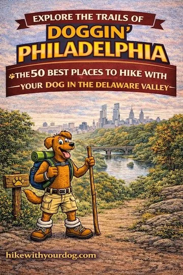 Southeastern Pennsylvania, northern Delaware and South Jersey can be fantastic places to hike with your dog. After a short drive you can be hiking with your dog on sand trails, climb hills that leave you and your dog panting, walk on some of the most historic grounds in America, explore the estates of America's wealthiest families or circle lakes for seven miles and never lose sight of the water. Also included are Atlantic beach regulations for dogs...outfitting your dog for a hike...low impact hiking with your dog...parks that do not allow dogs...and much more. What makes a great place to take your dog hiking? Well, how about a paw-friendly surface to trot on? Grass and sandy dirt are alot more appealing than asphalt and rocks. A variety of hikes is always good - long ones for athletic dogs and short ones for the less adventurous canine. Dogs always enjoy a refreshing place to swim as well. Our guides focus on the parks that are good choices to take your dog. We'll tell you the ones dog owners needn't bother with and feature the places that welcome your dog. For dog-friendly parks we describe the trail options for your dog, evaluate park traffic from other users, tell you whether you will need a guide dog to find your way around and, of course, tell you how to get to the park.So what are you waiting for? Your dog will want to hike through one of North America's only three serpentine barrens? (page 48), trot past the exact base point for the Mason-Dixon Line? (page 101), climb on a wooden reproduction of a rare Fink Truss bridge? (page 82)...